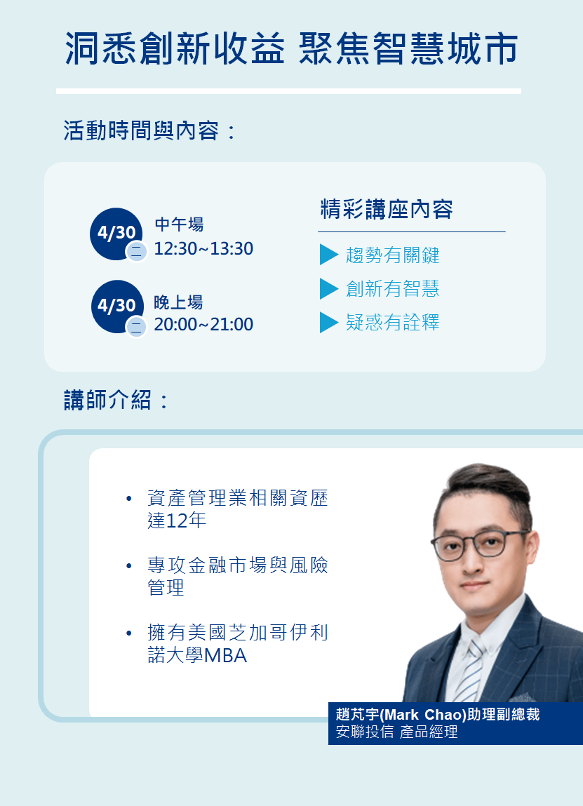 我們誠摯地邀請您,連線參與【安聯e學苑 – 洞悉創新收益 聚焦智慧城市】