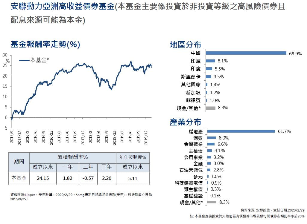 安聯動力亞洲高收益債券基金(本基金主要係投資於非投資等級之高風險債券且配息來源可能為本金)