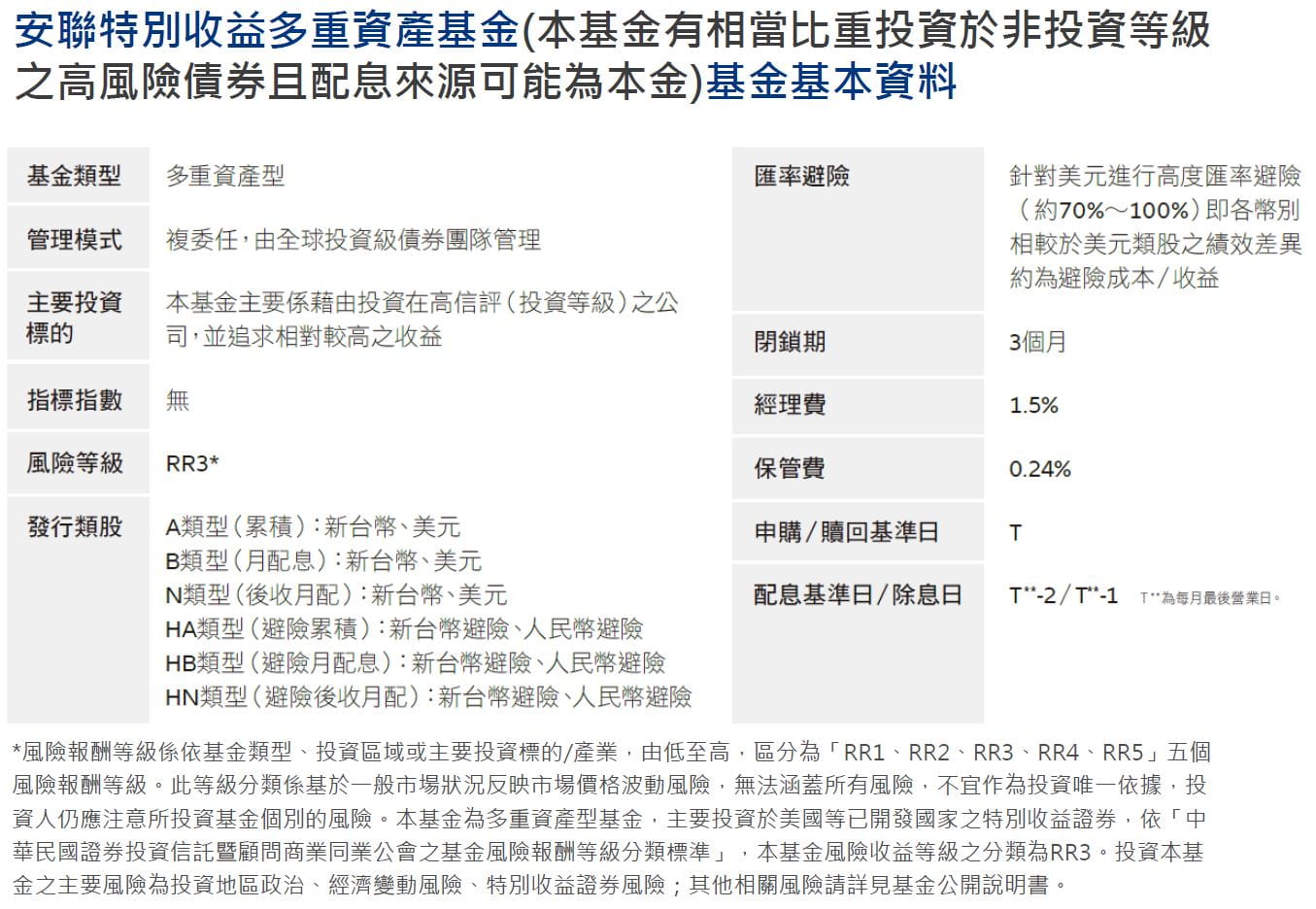 安聯特別收益多重資產基金(本基金有相當比重投資於非投資等級之高風險債券且配息來源可能為本金)