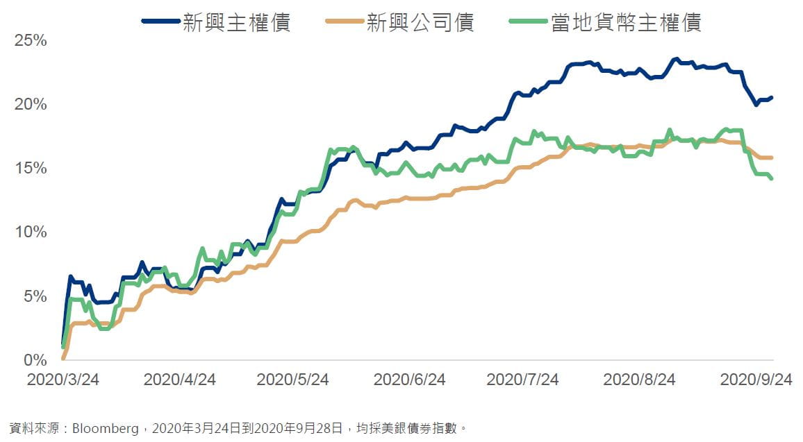 新興市場主權債由今年3月24日低點到9月28日漲幅達20.5%,是國際資金優先獲利了結新興市場主權債的主因(同期間公司債漲幅約15.8%,而近期美元略有轉強,也影響新興債市表現。