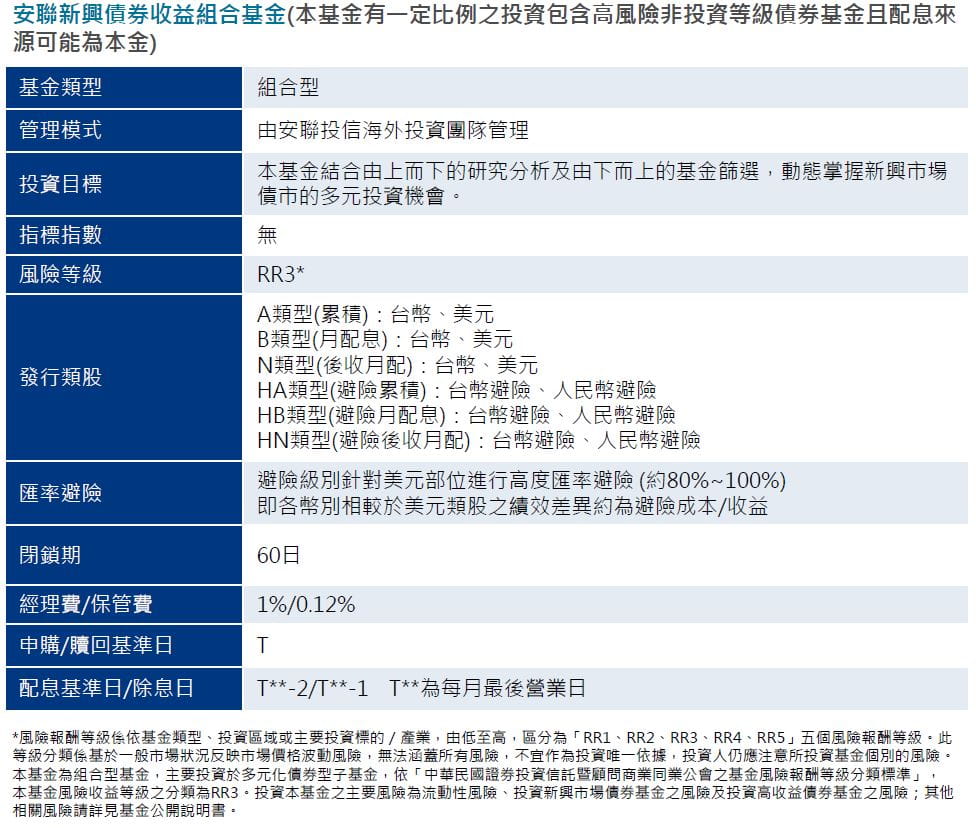 安聯新興債券收益組合基金(本基金有一定比例之投資包含高風險非投資等級債券基金且配息來源可能為本金)
