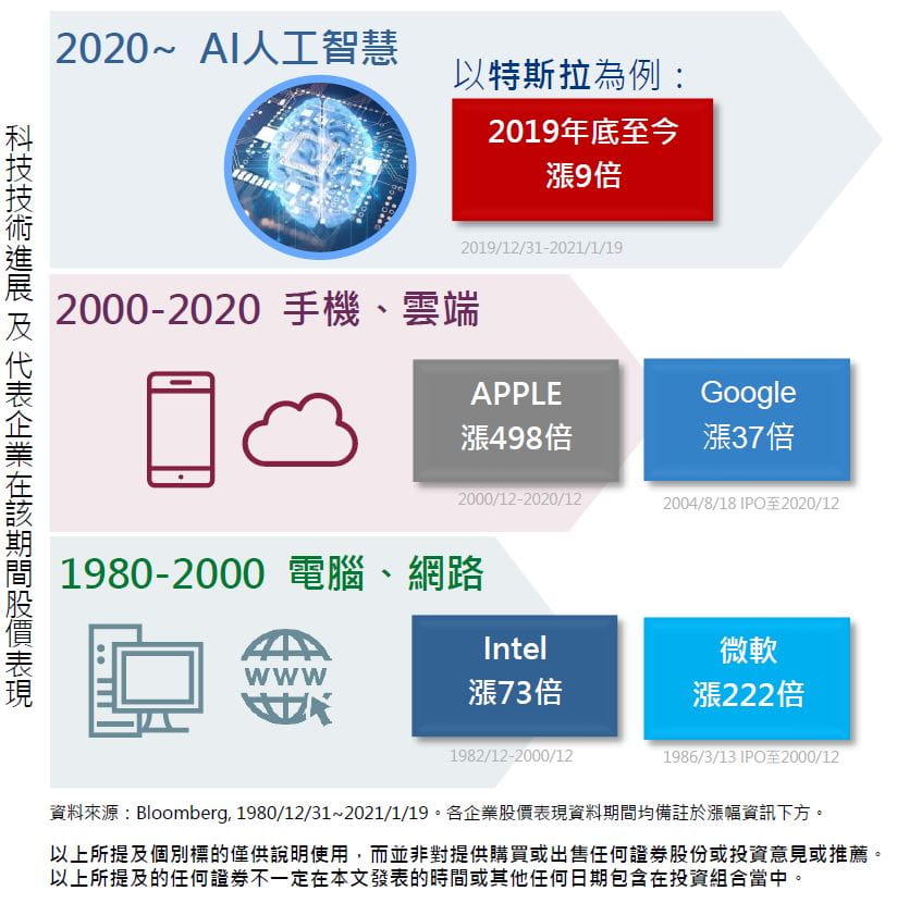科技代表企業隨著技術進步而變化,掌握新趨勢=掌握新機會,用AI基金掌握新世代的代表企業!