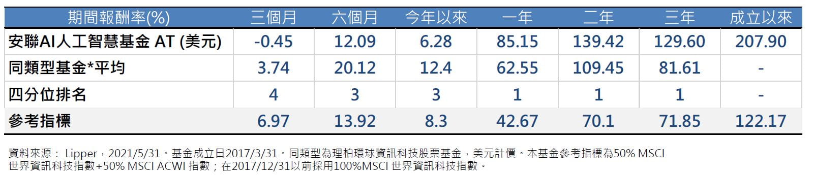 安聯AI人工智慧基金 回顧及展望