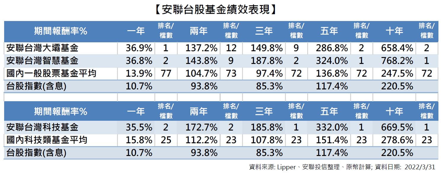 安聯台灣大壩、台灣科技、台灣智慧基金