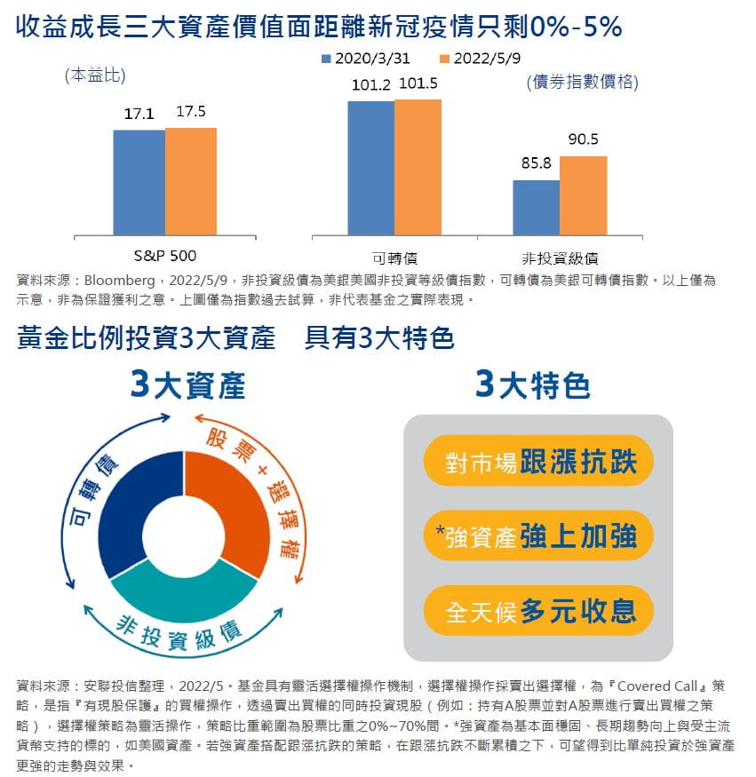 - 團隊認為,收益成長三大資產在市場修正後,下檔風險降溫,但仍有參與上檔反彈的空間,適合投資人在低檔分批佈局。