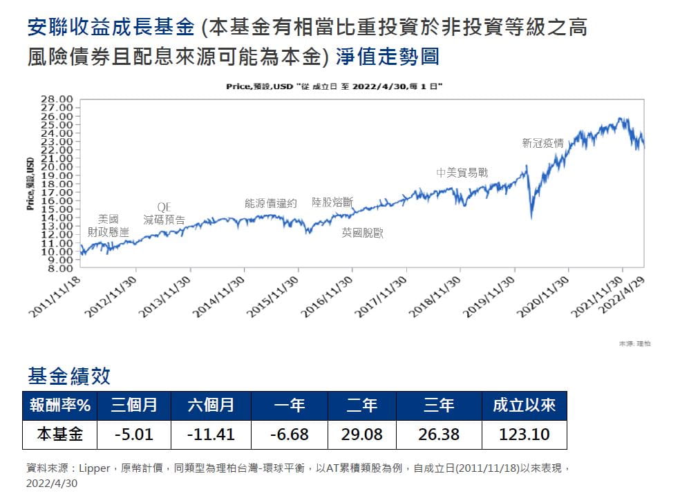 安聯收益成長基金(本基金有相當比重投資於非投資等級之高風險債券且配息來源可能為本金)