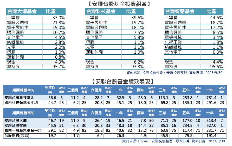 安聯台灣大壩、台灣科技、台灣智慧基金