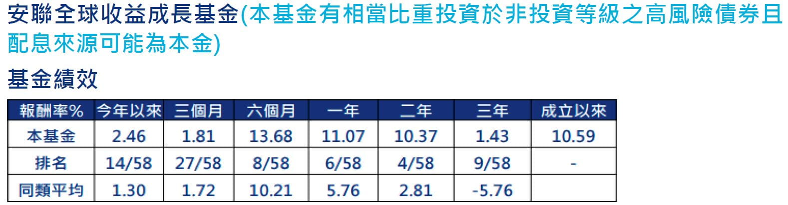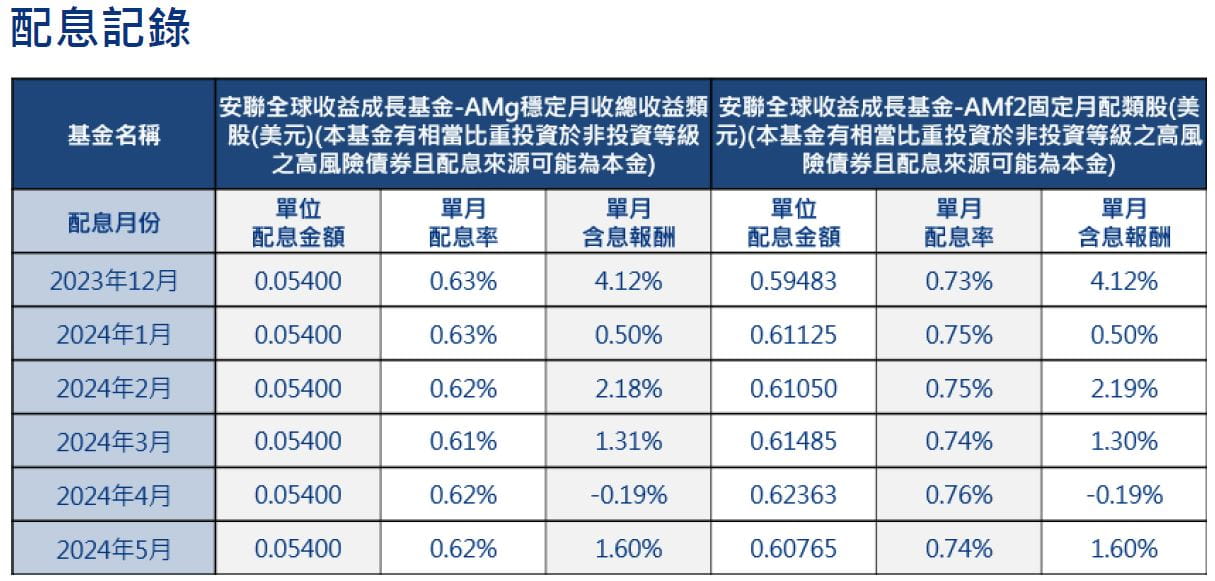 安聯全球收益成長基金(本基金有相當比重投資於非投資等級之高風險債券且配息來源可能為本金)