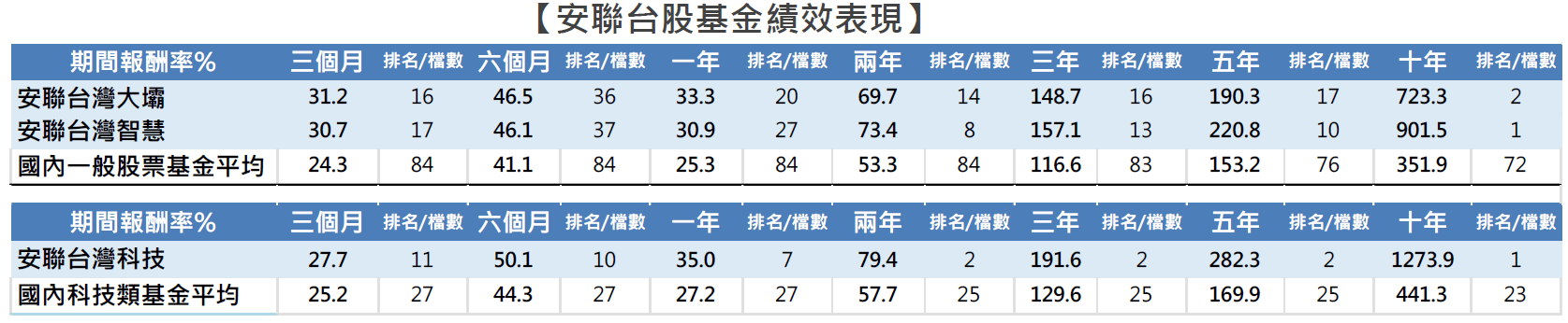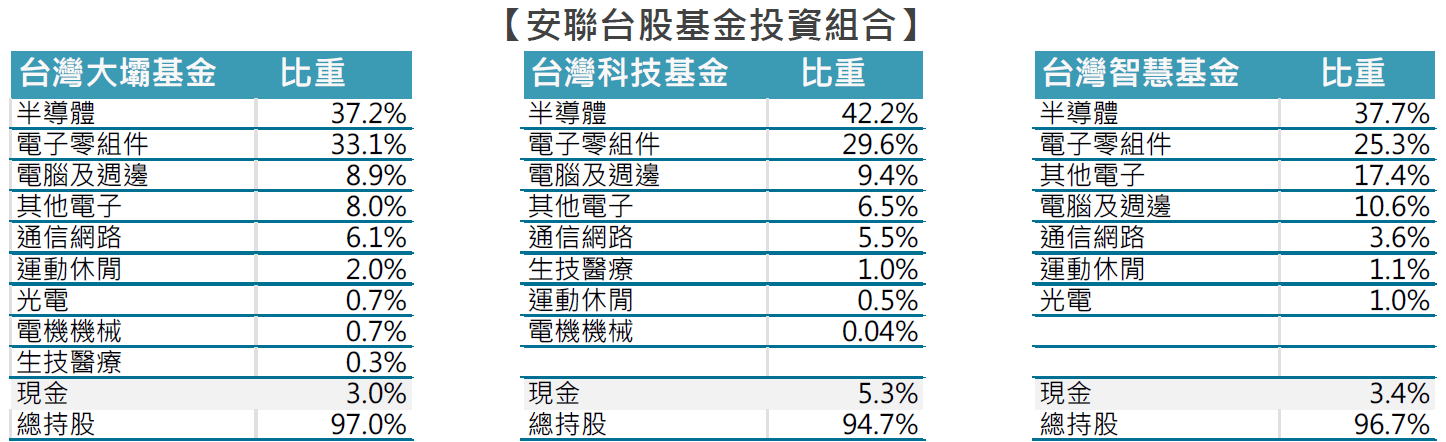 安聯台灣大壩、台灣科技、台灣智慧基金
