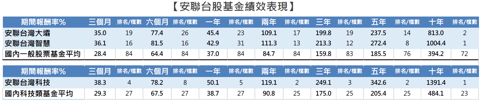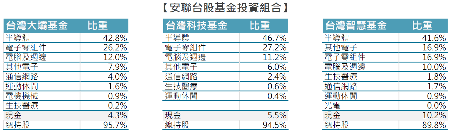 安聯台灣大壩、台灣科技、台灣智慧基金