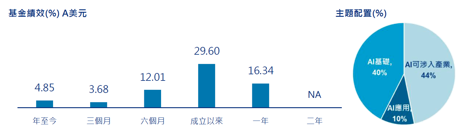 投資主題:去年來陸續調整軟體布局,目前主要聚焦在AI基礎(半導體、硬體)比重約40%,AI可涉入產業(科技之外產業)約44%,而AI應用(軟體)比重僅約10%。