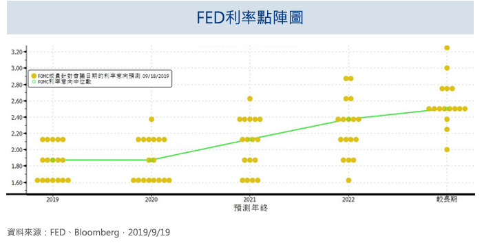 - 由會後聲明及利率點陣圖來看,聯準會認為美國經濟成長動能佳,美國經濟衰退風險仍低,但外部不確定因素造成經濟下行風險升高,本次降息仍為預防性降息。