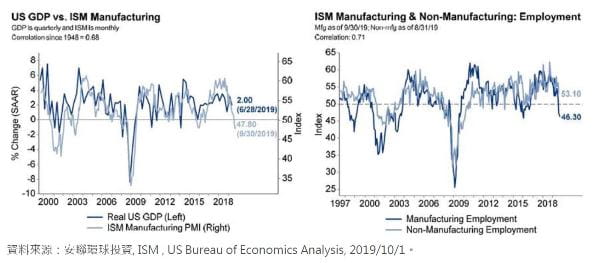 - 美國總統川普持續與中國打貿易戰、美國消費者支出減少和美國主要工廠製品銷售疲軟,使投資人對美國經濟感到憂心,如今ISM製造業採購經理人指數連續兩個月低於50榮枯線,進一步加深金融市場對美國第四季經濟成長可能急遽放緩的憂慮。