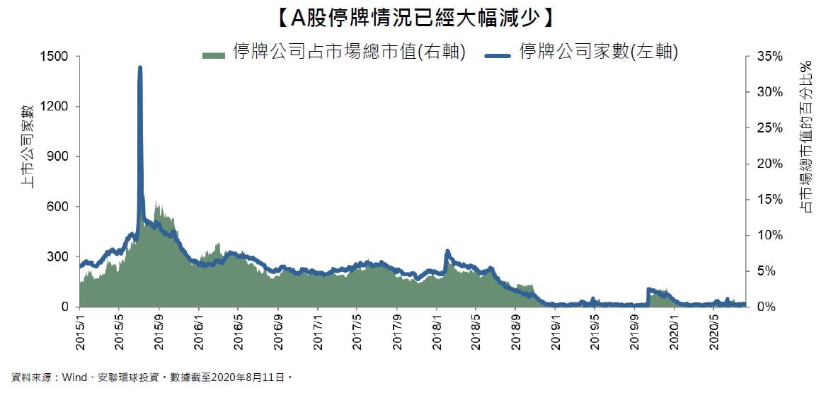 - A股過去曾有大量個股停牌,但目前停牌個股檔數接近歷史低點。