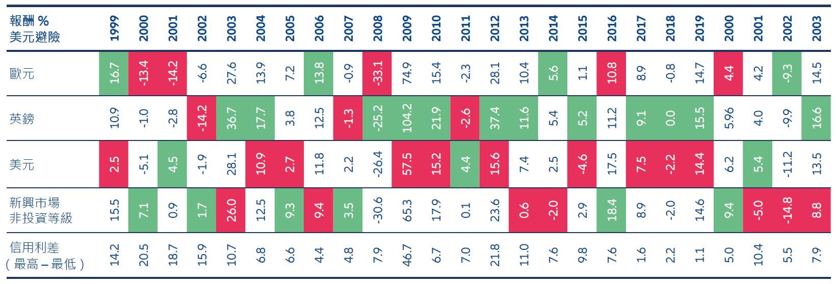 圖4:隨著時間的推移,沒有一個非投資等級債市場的表現,始終優於其他市場區域的非投資等級債市場年報酬率